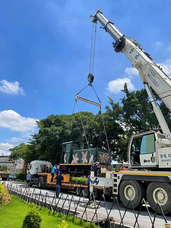 埔鹽吊車公司-埔鹽公所公園火車頭搬運安裝,全成起重行0910-651787沈先生